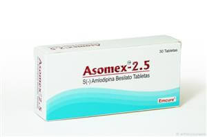 Asomex 2.5mg Tablet is used in the treatment of hypertension and chest pain (Angina).